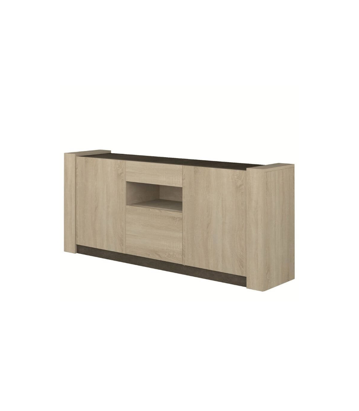 El aparador Aria es una pieza clave para quienes buscan almacenaje amplio, diseño elegante y funcionalidad en el salón o comedor. Su acabado en roble Bardolino combinado con ceramic crea un contraste sofisticado entre calidez y modernidad, perfecto para ambientes contemporáneos o de estilo industrial.