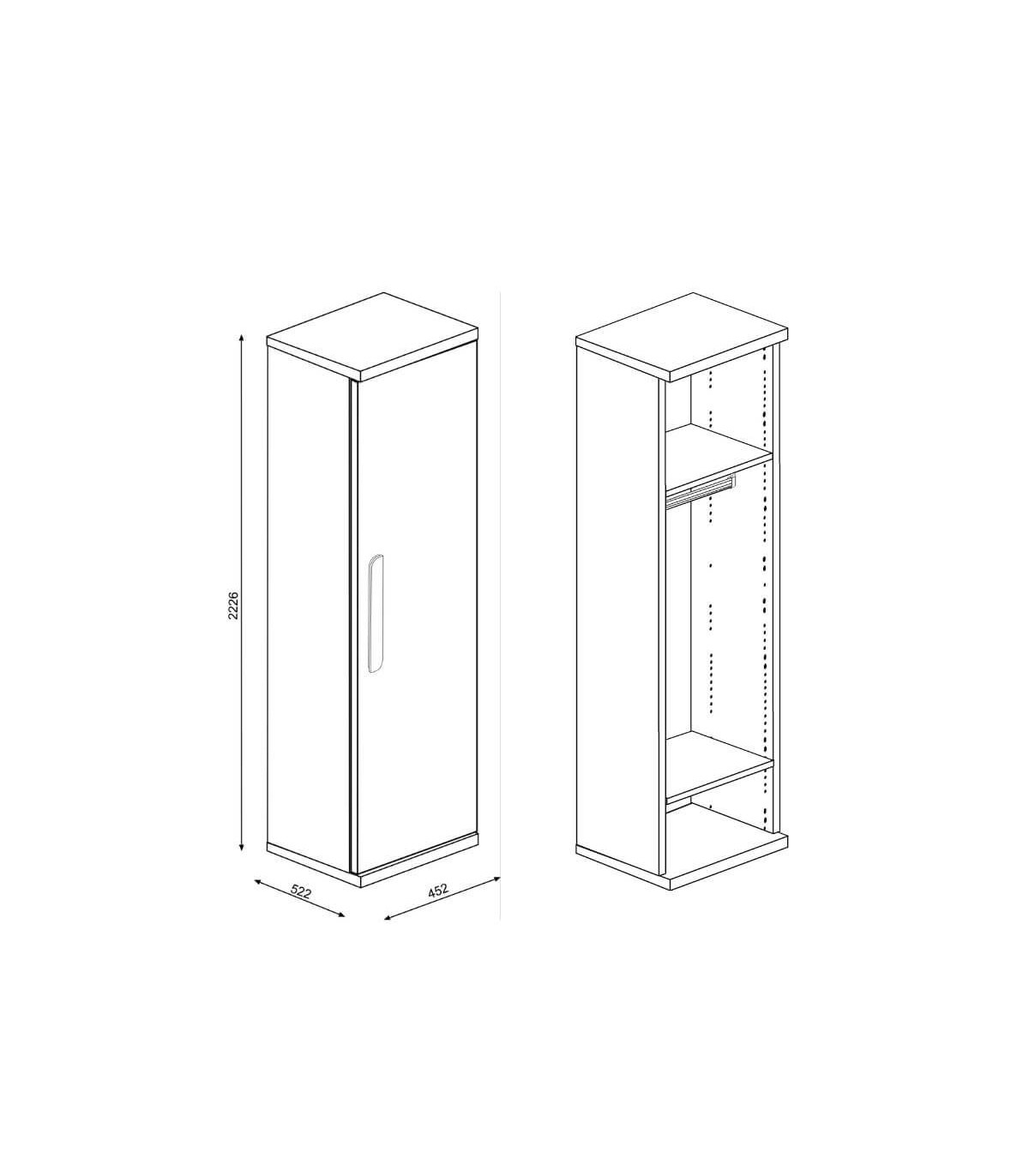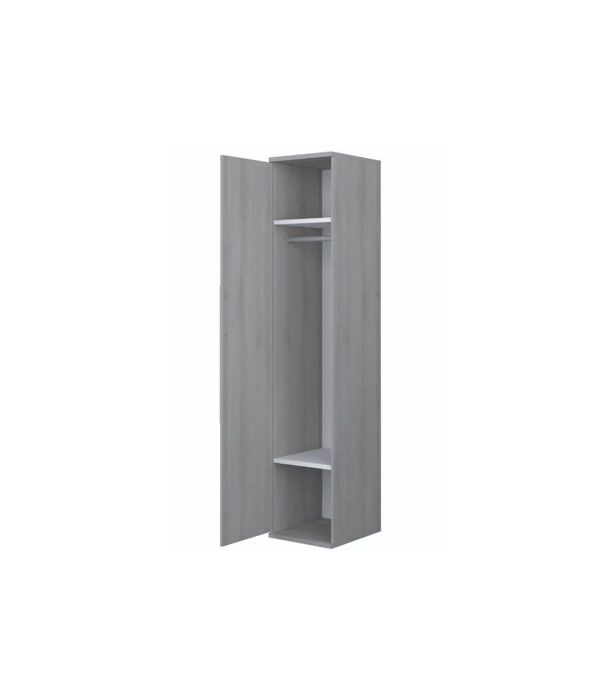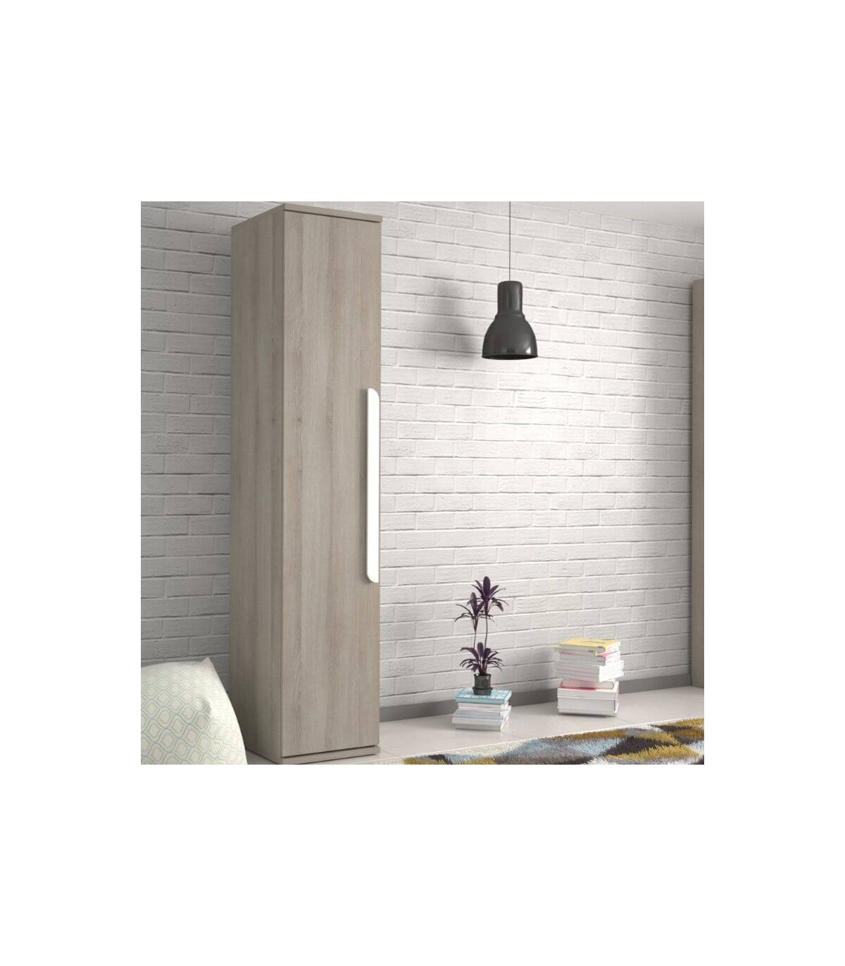 El Armario Columna una puerta combina diseño moderno y gran capacidad de almacenaje. Con estantes interiores y barra de colgar, es ideal para mantener tu ropa organizada en espacios reducidos con estilo.