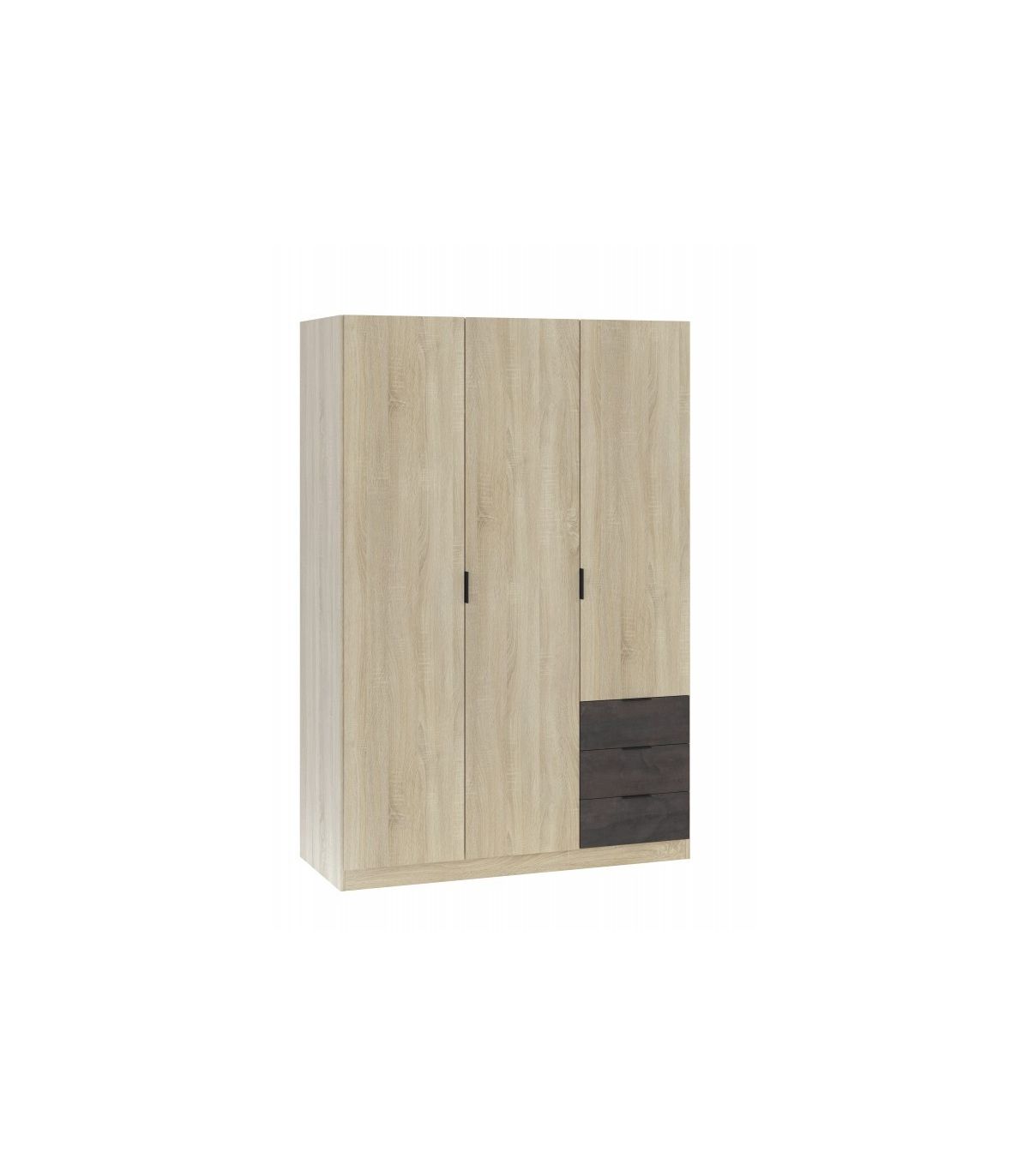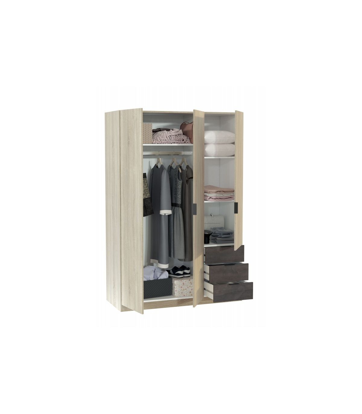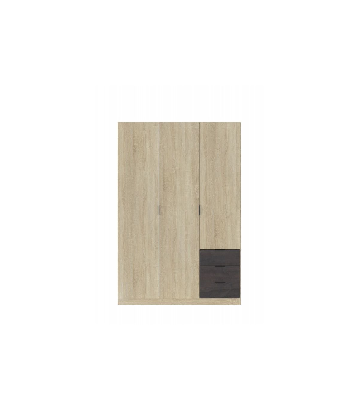 El armario de tres puertas y tres cajones Roble Canadian y Oxido es la solución perfecta para quienes buscan un diseño moderno con carácter y gran capacidad de almacenaje. Con un estilo que fusiona lo mejor del nórdico y la tendencia industrial, este armario destaca por su elegante acabado en Roble Canadian combinado con detalles Óxido, logrando un equilibrio perfecto entre calidez y personalidad.