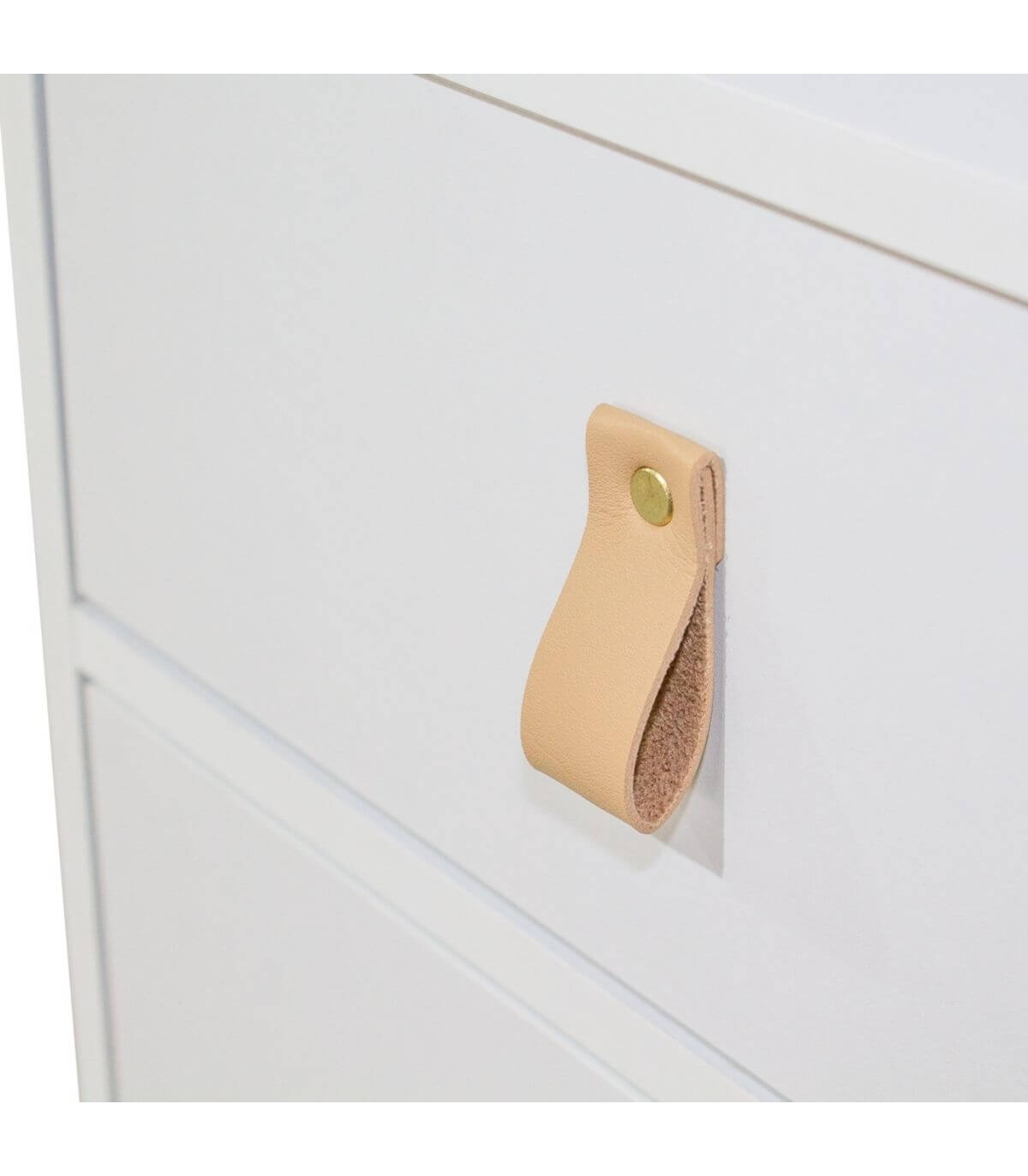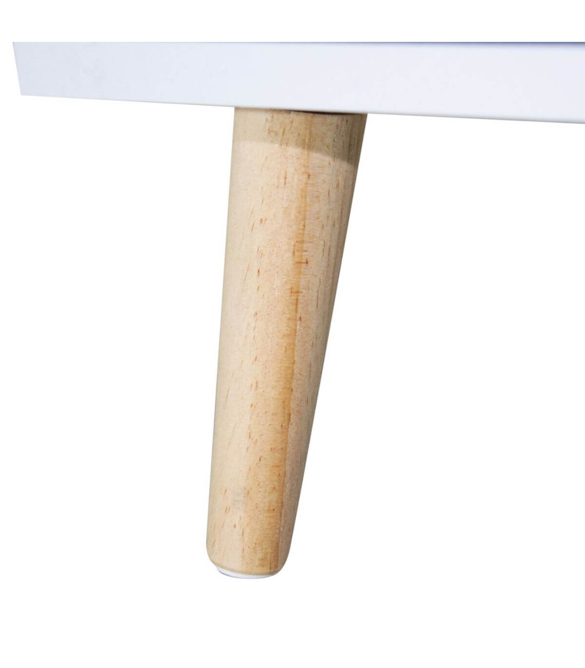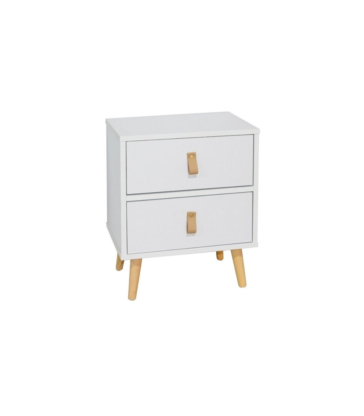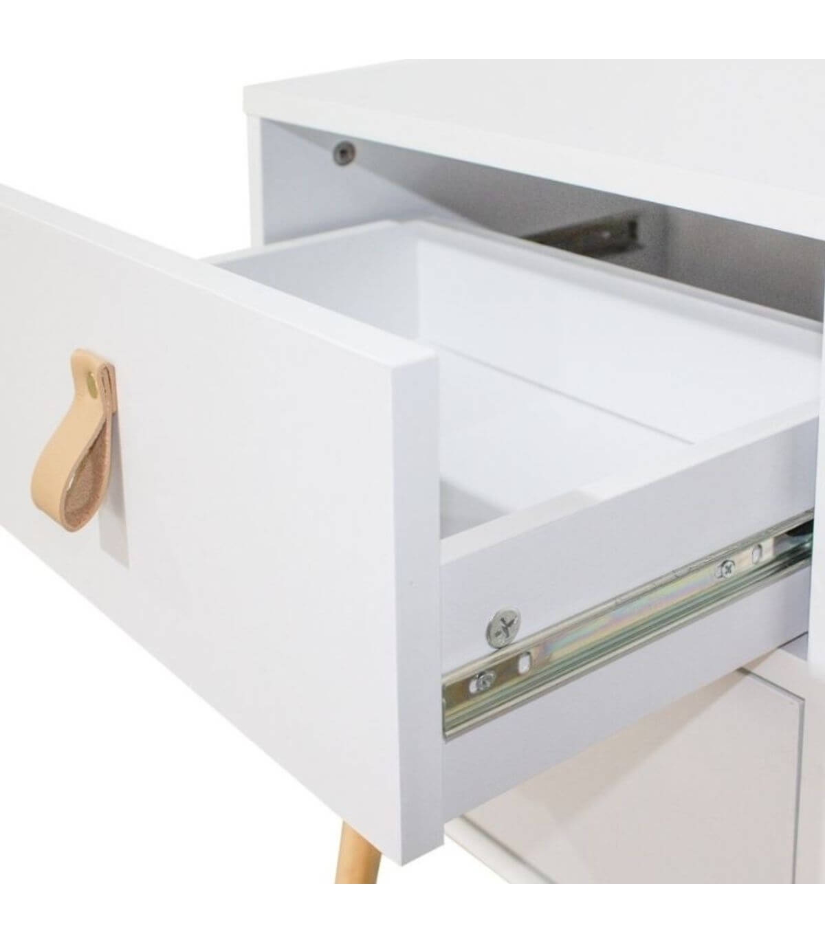 La mesita Anzio Blanca combina diseño escandinavo y un toque rústico. Con dos cajones, patas de madera de pino barnizadas y acabados blancos, es funcional, elegante y fácil de combinar.