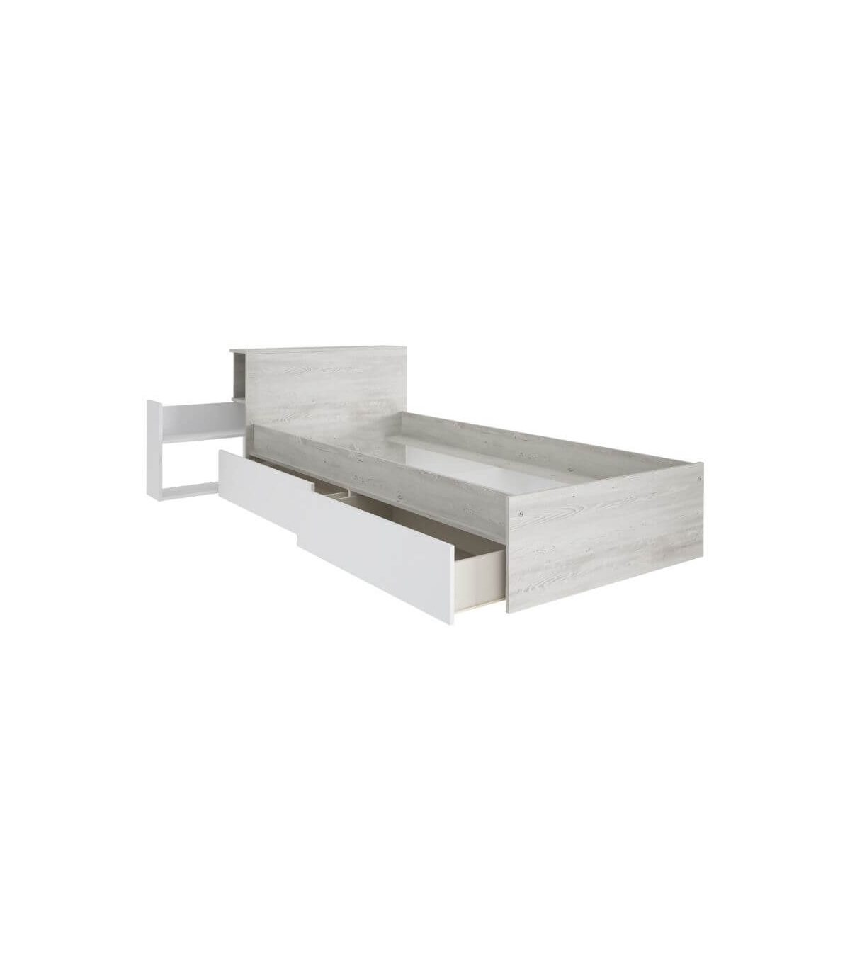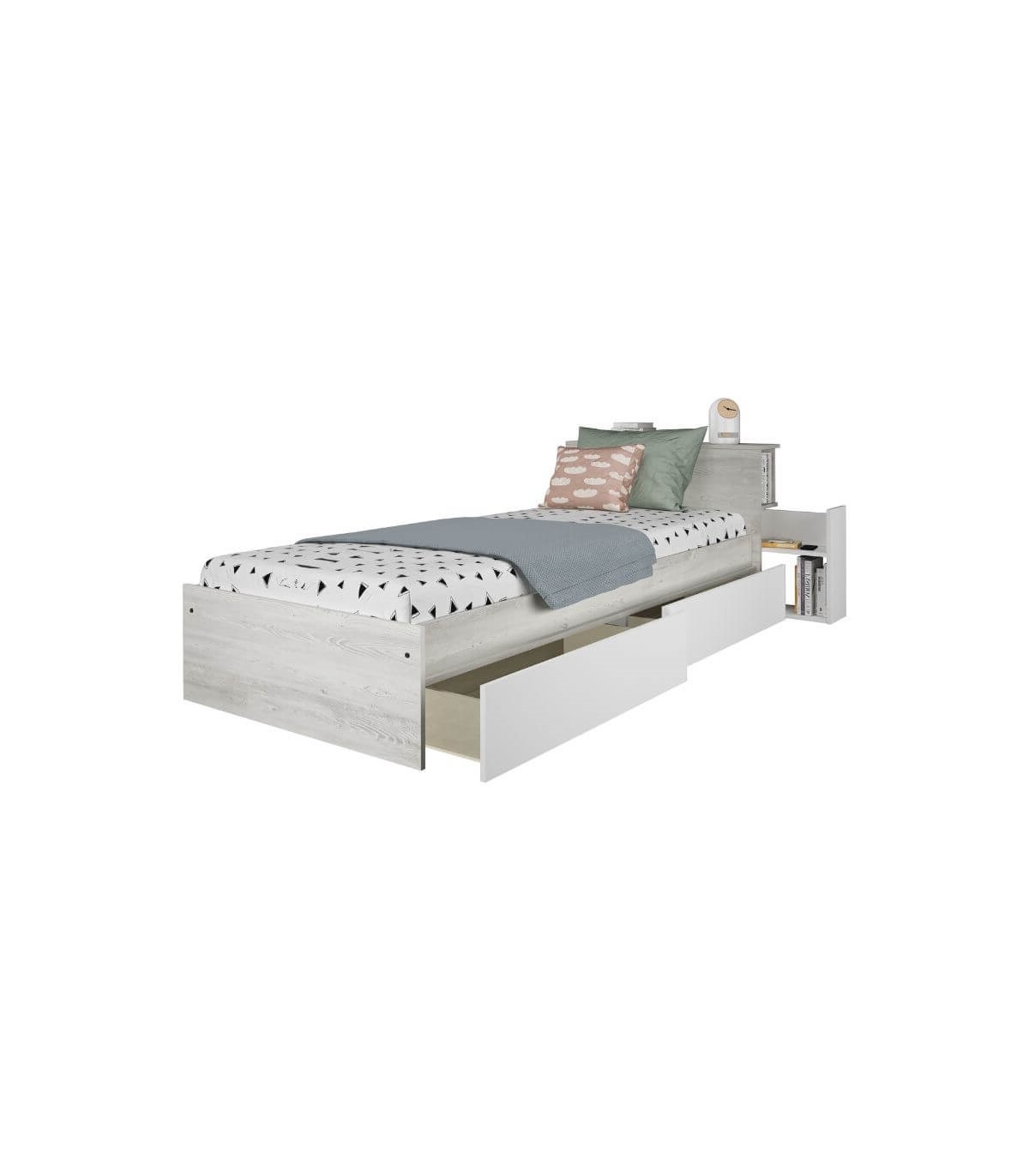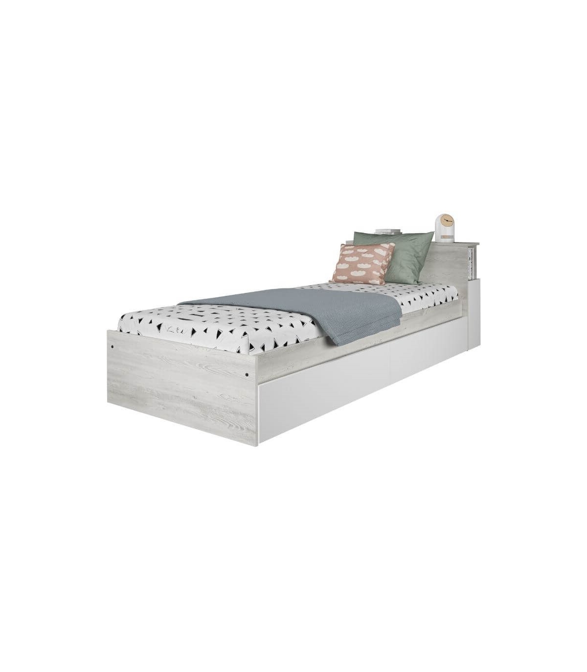 Incluye mueble desmontado compuesto por Cama con Cajones y Cabecero con Mesita Extraible Jazz 90x200cm