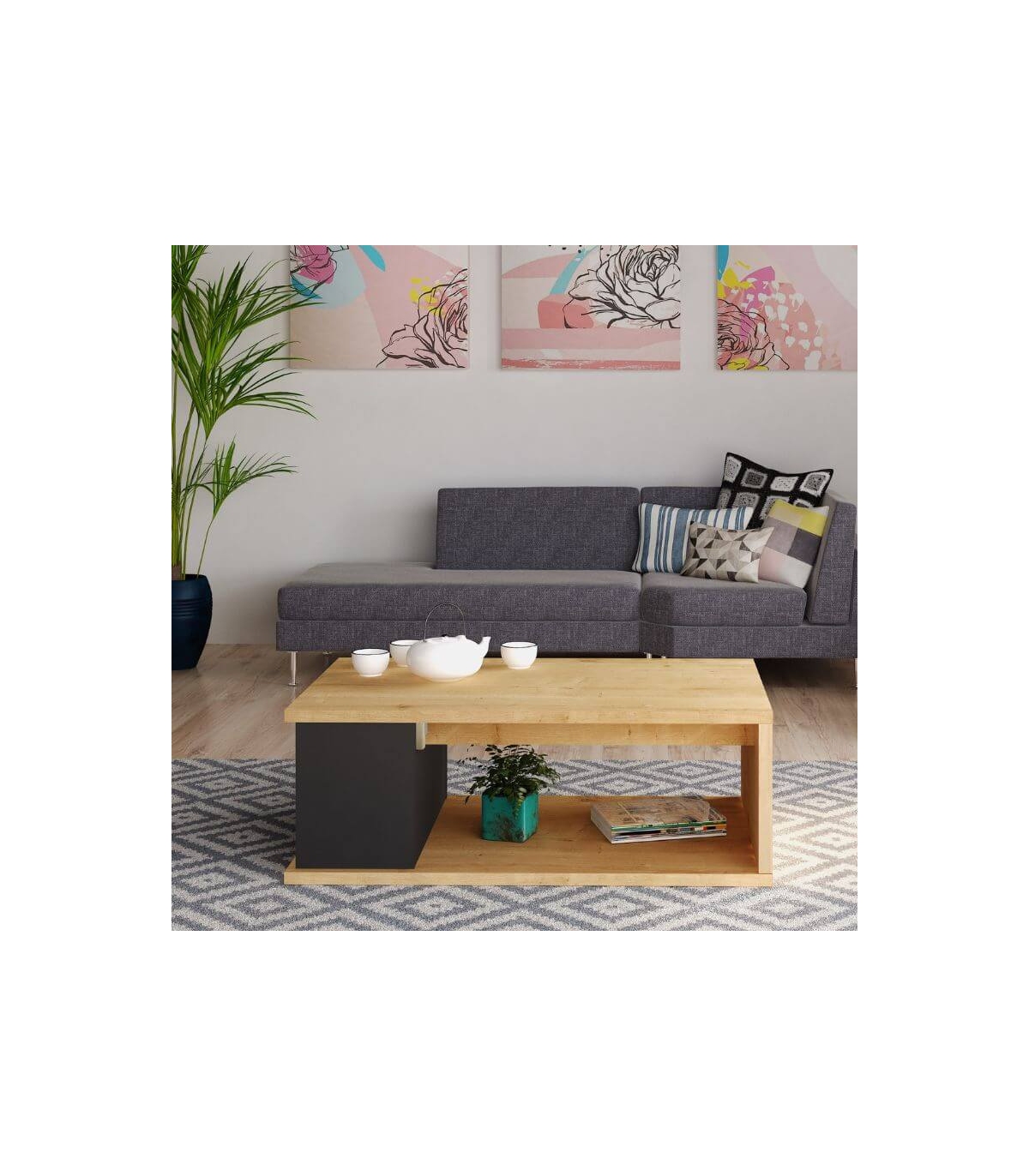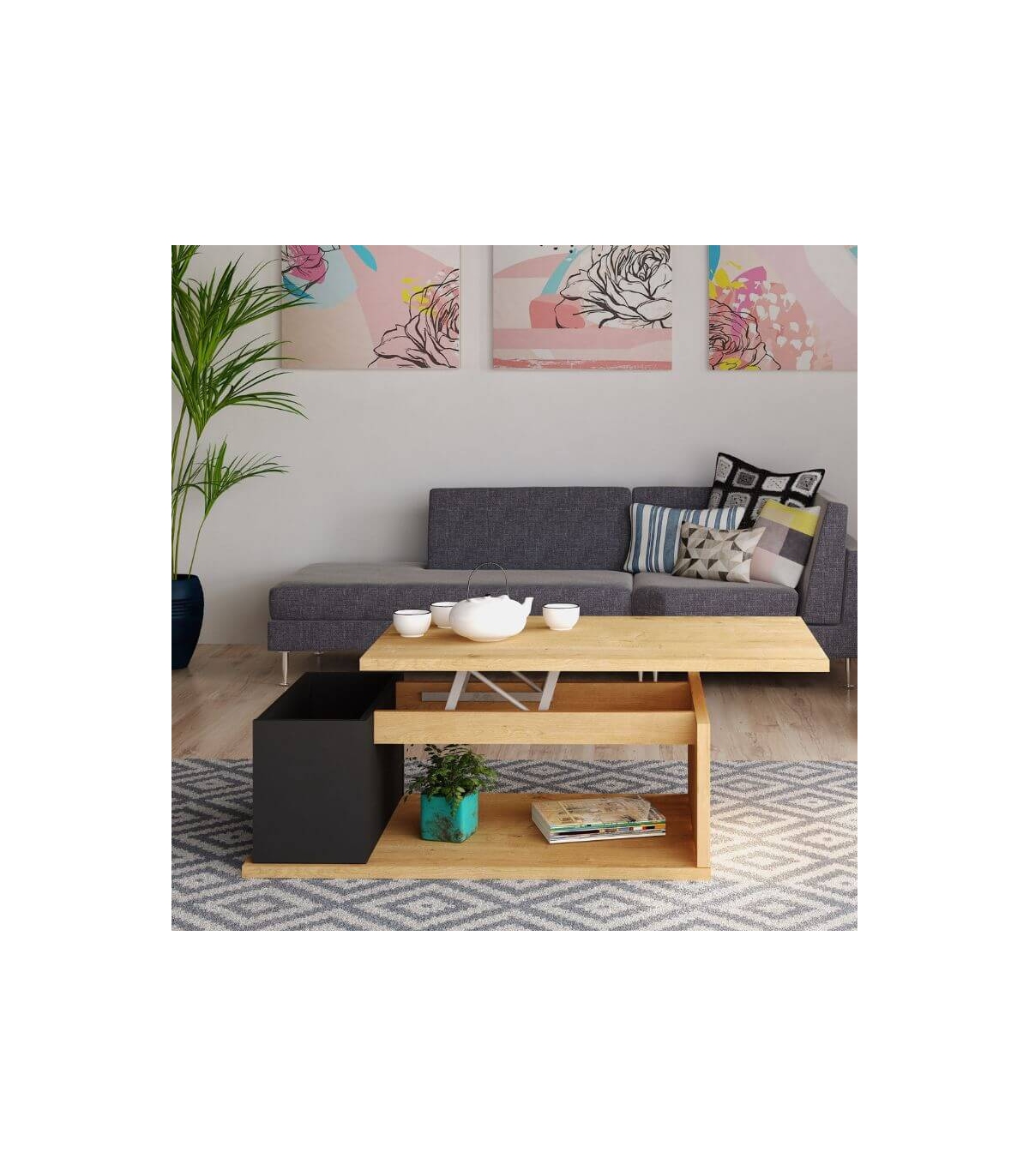 Incluye mueble desmontado compuesto porMesa de Centro Elevable Ottawa 90cm