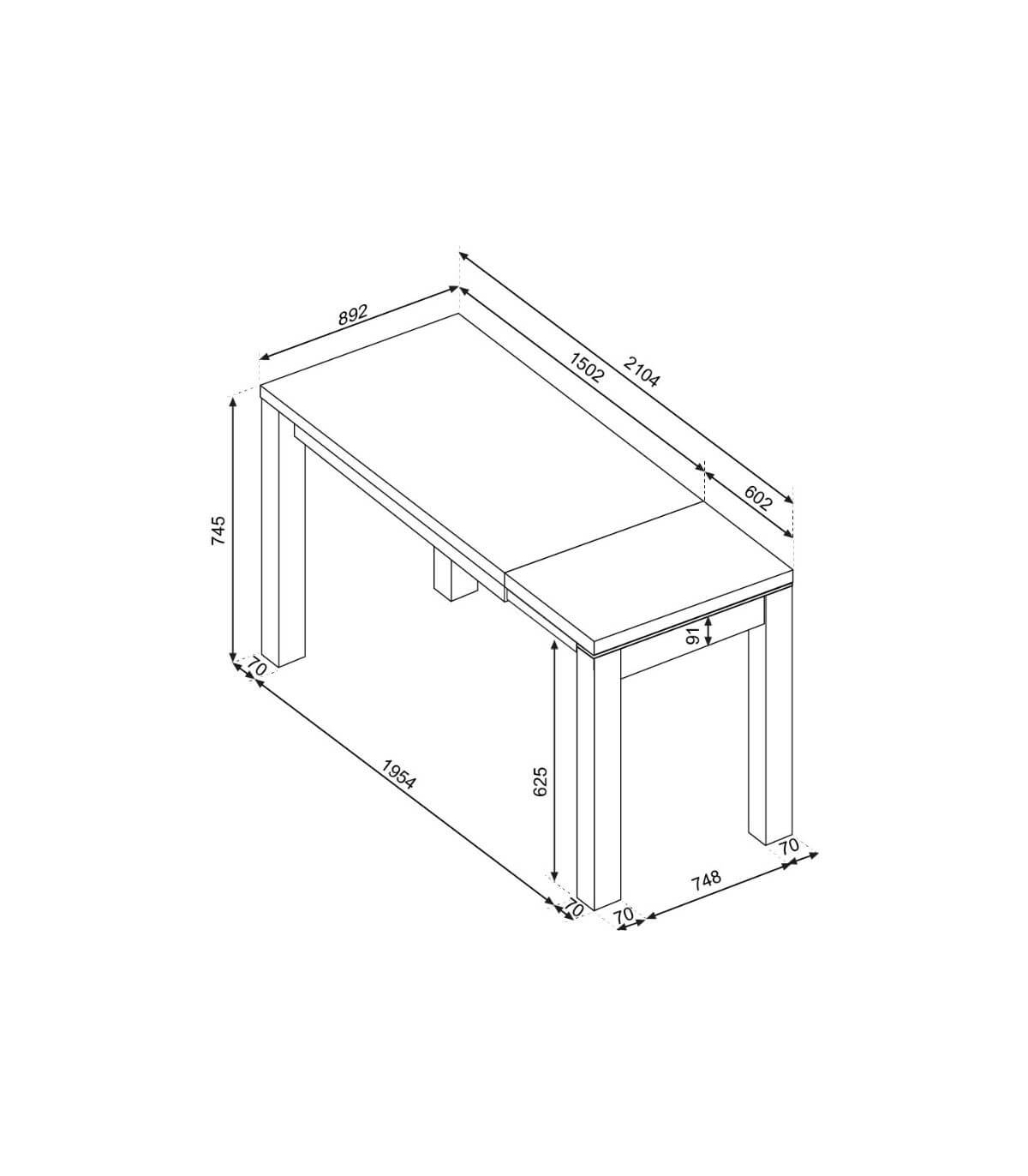 Con unas medidas de 150-210 cm de ancho, 90 cm de fondo y 75 cm de alto, esta mesa se convierte en una solución funcional sin renunciar al diseño, optimizando el espacio en tu comedor.