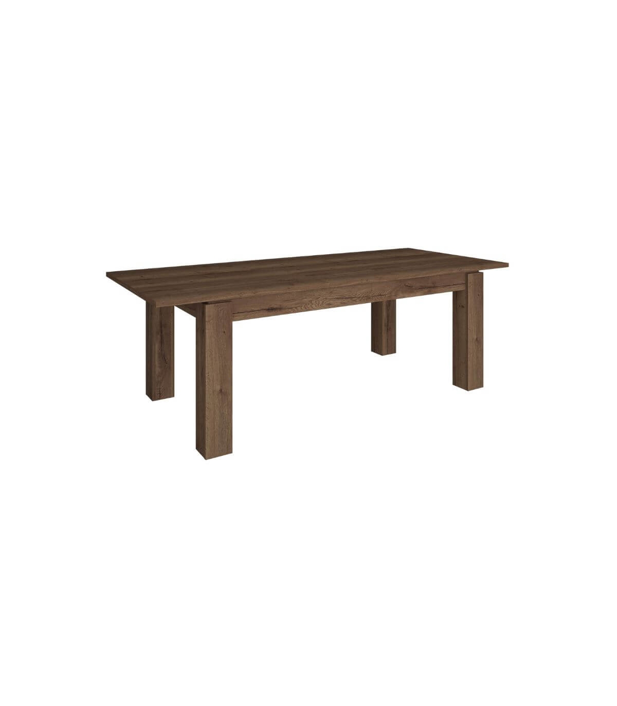 Fabricada en tablero de partículas melaminizado con grosores de 25 y 19 mm y herrajes metálicos de alta calidad, garantiza estabilidad y durabilidad en el uso diario. Su sistema de extensión es práctico y cómodo, permitiendo ampliar la mesa de 190 cm a 235 cm con una sola mano, gracias a un mecanismo que desplaza los tableros en direcciones opuestas.