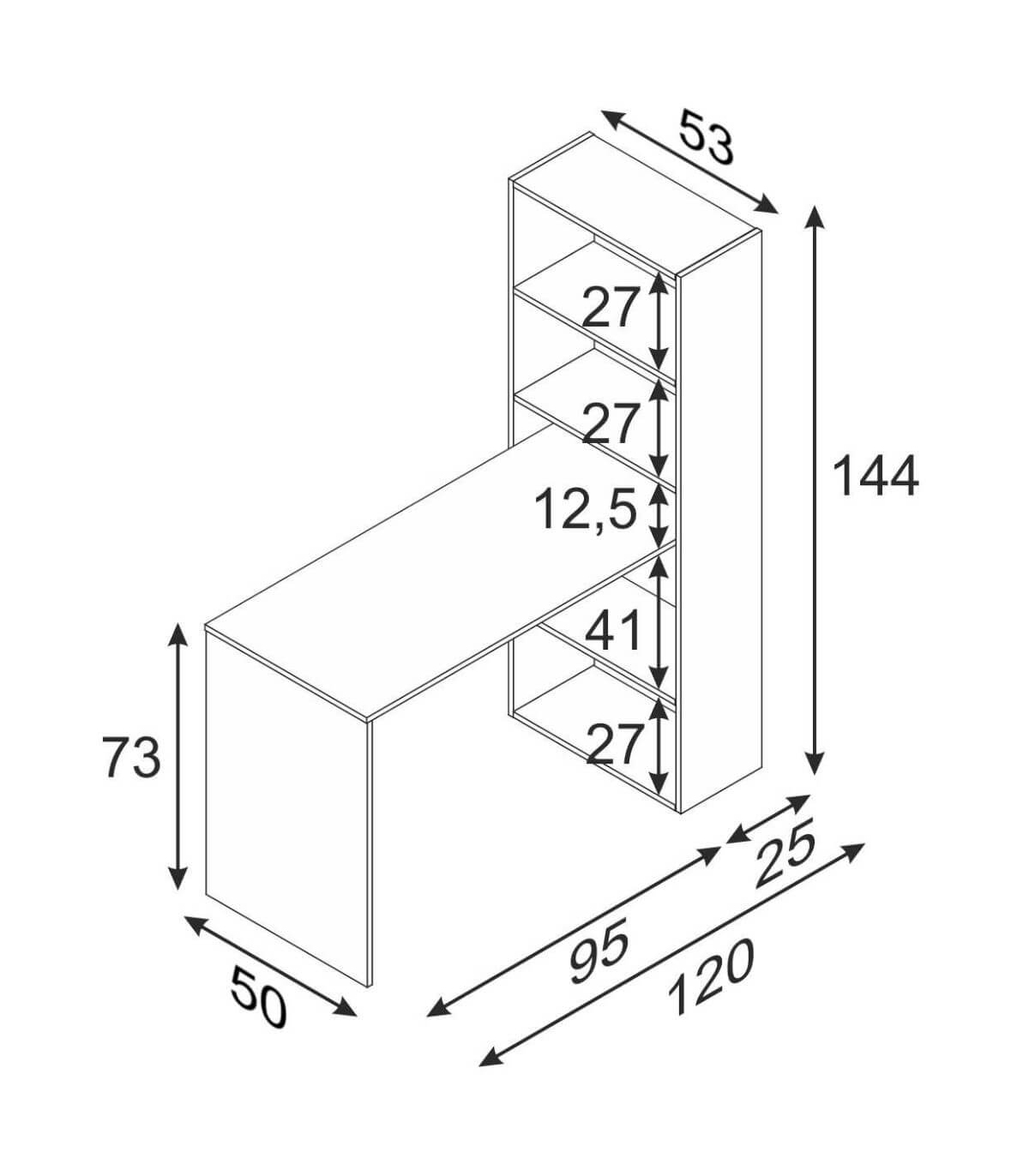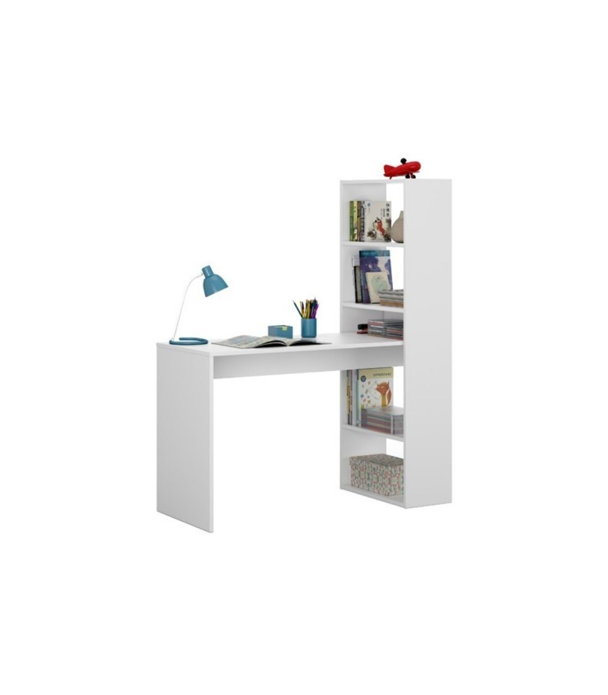 Incluye mueble desmontado compuesto por Mesa + Estantería BLANCO ARTIK