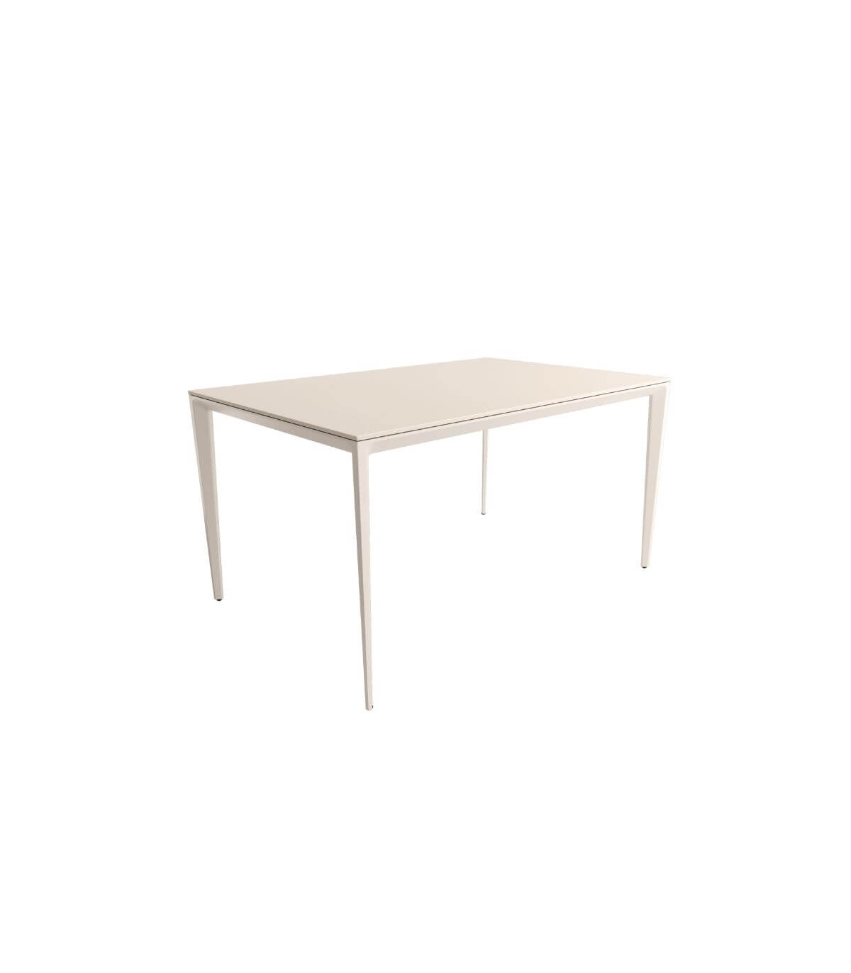 La mesa Cortés es una opción sofisticada para quienes buscan un equilibrio entre diseño moderno y funcionalidad. Su estructura de aluminio en tono Marfil o Negro aporta ligereza y resistencia, mientras que su sobre porcelánico de 12 mm, disponible en acabados Arena, Carrara, Marquina o Porland, realza su carácter elegante.