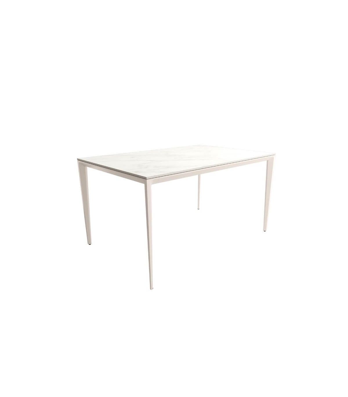La mesa Cortés es una opción sofisticada para quienes buscan un equilibrio entre diseño moderno y funcionalidad. Su estructura de aluminio en tono Marfil o Negro aporta ligereza y resistencia, mientras que su sobre porcelánico de 12 mm, disponible en acabados Arena, Carrara, Marquina o Porland, realza su carácter elegante.