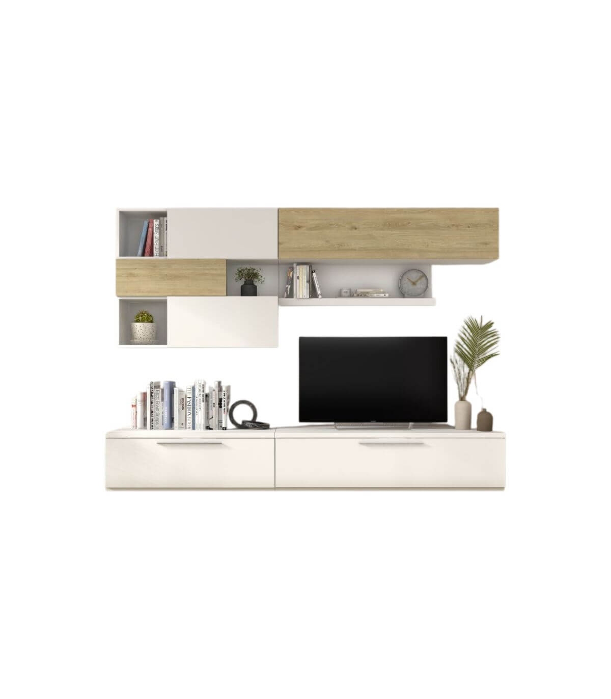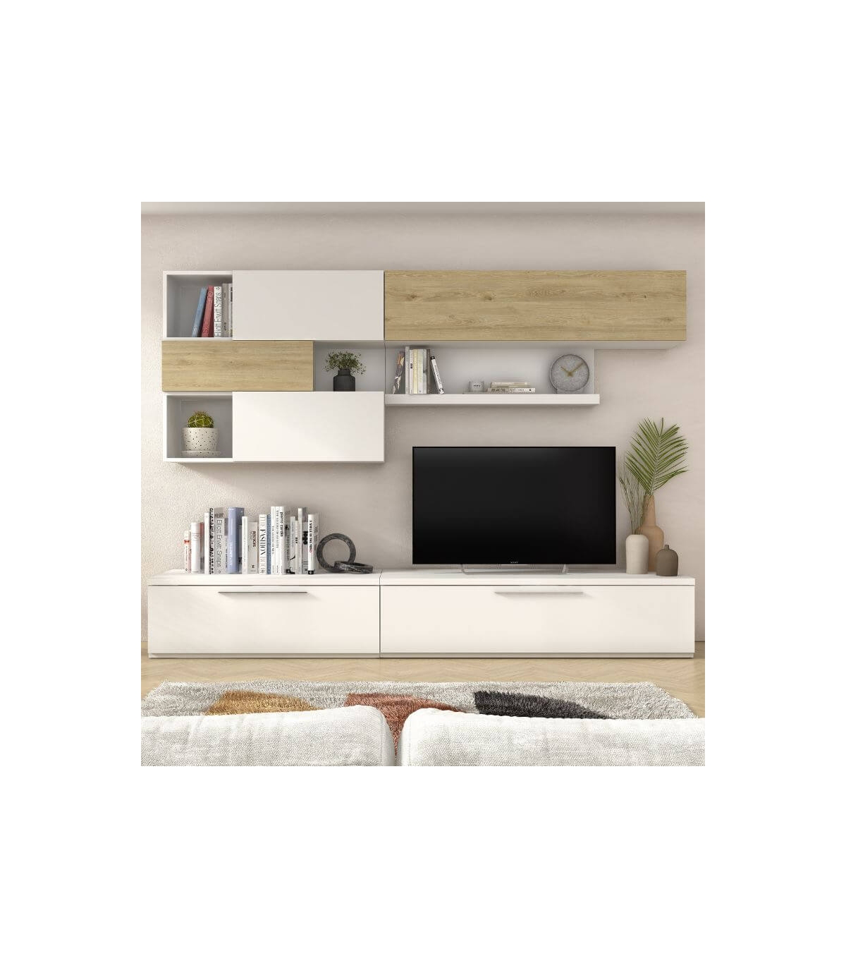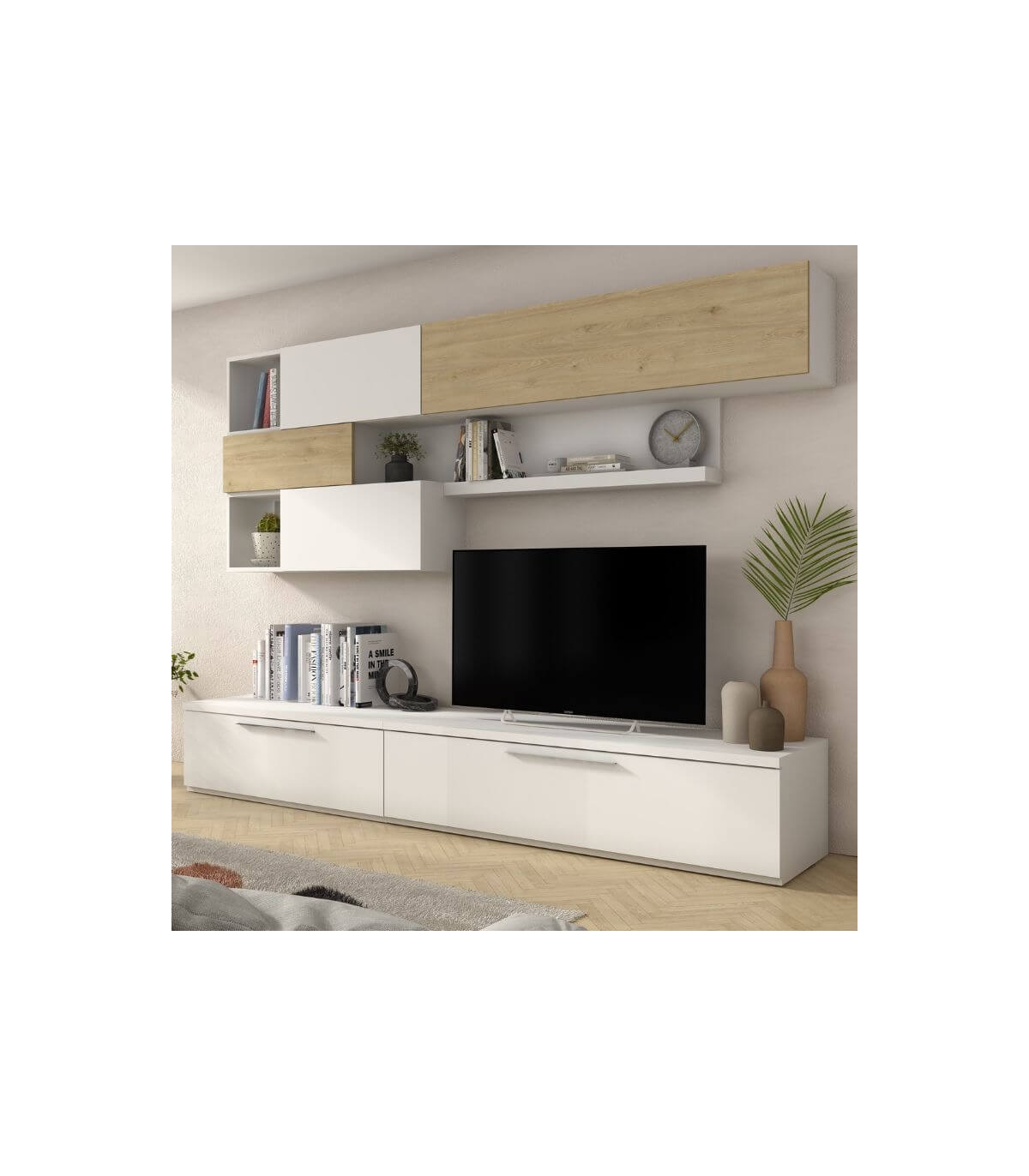 Incluye mueble desmontado compuesto por Mueble de Salón Isona Roble Natural y Blanco 260cm