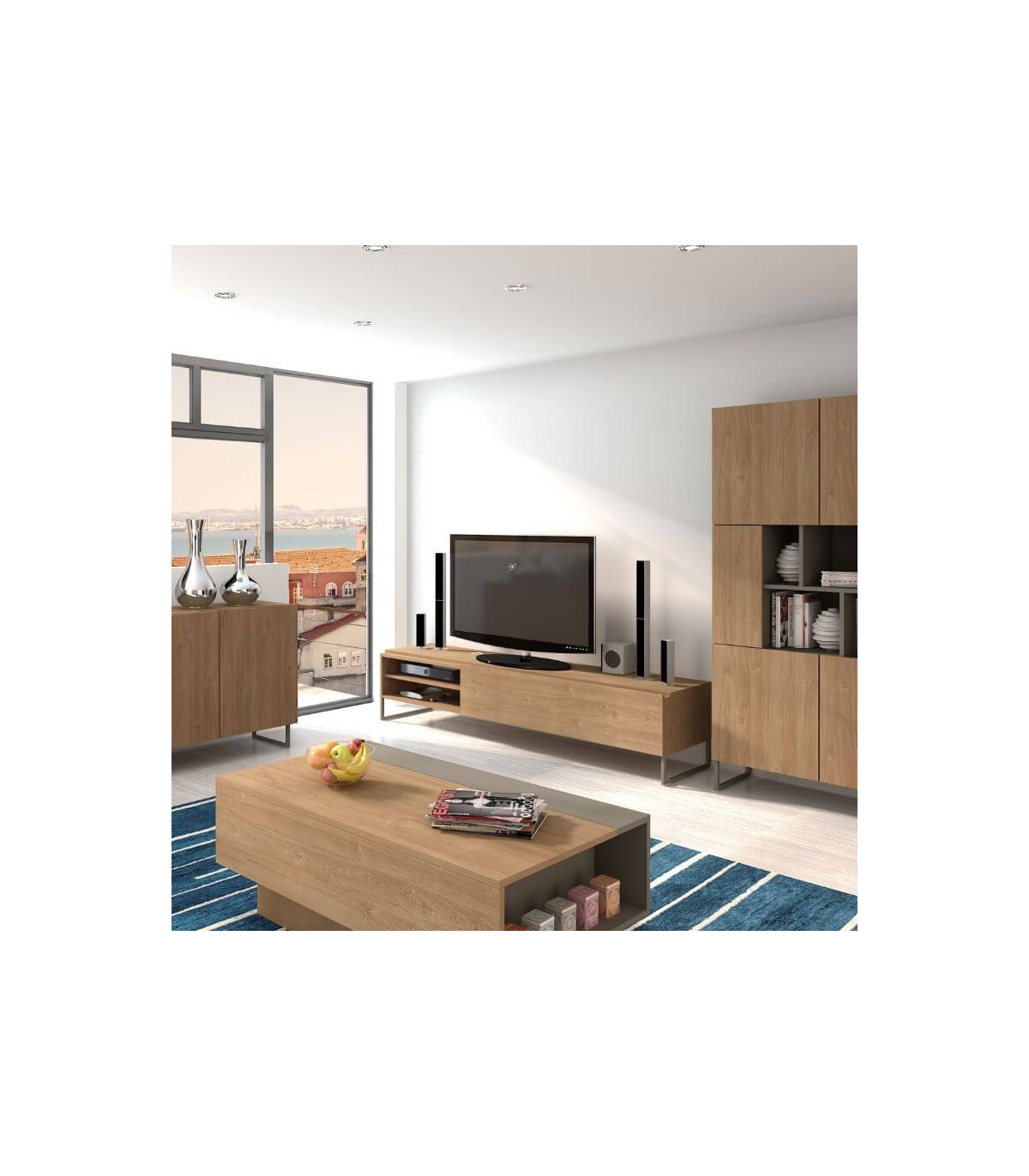 El mueble de televisión Nums es la opción perfecta para quienes buscan un equilibrio entre diseño contemporáneo, funcionalidad y orden. Su acabado en Kansas y gris aporta un estilo moderno con matices industriales, ideal para salones actuales con personalidad.