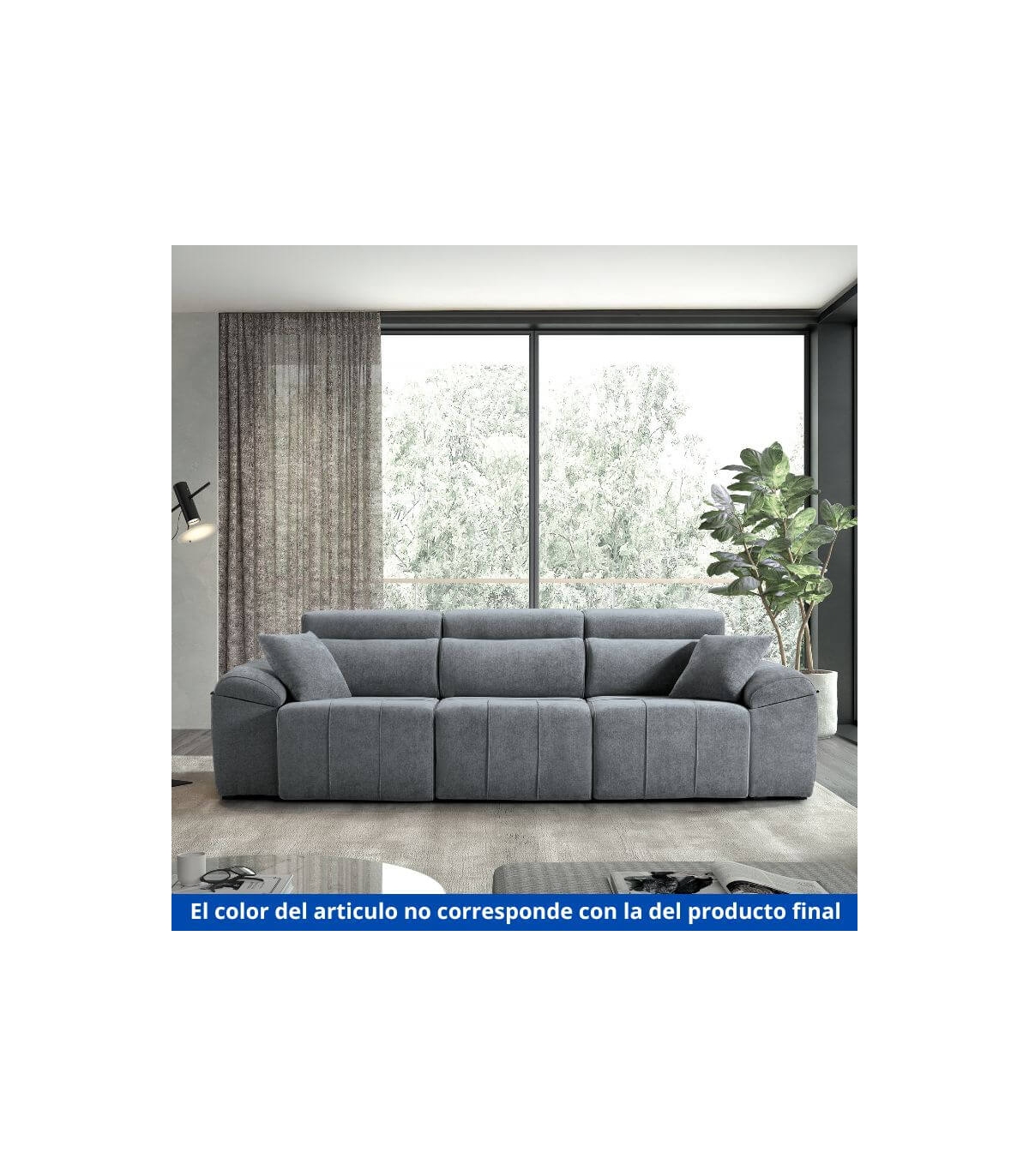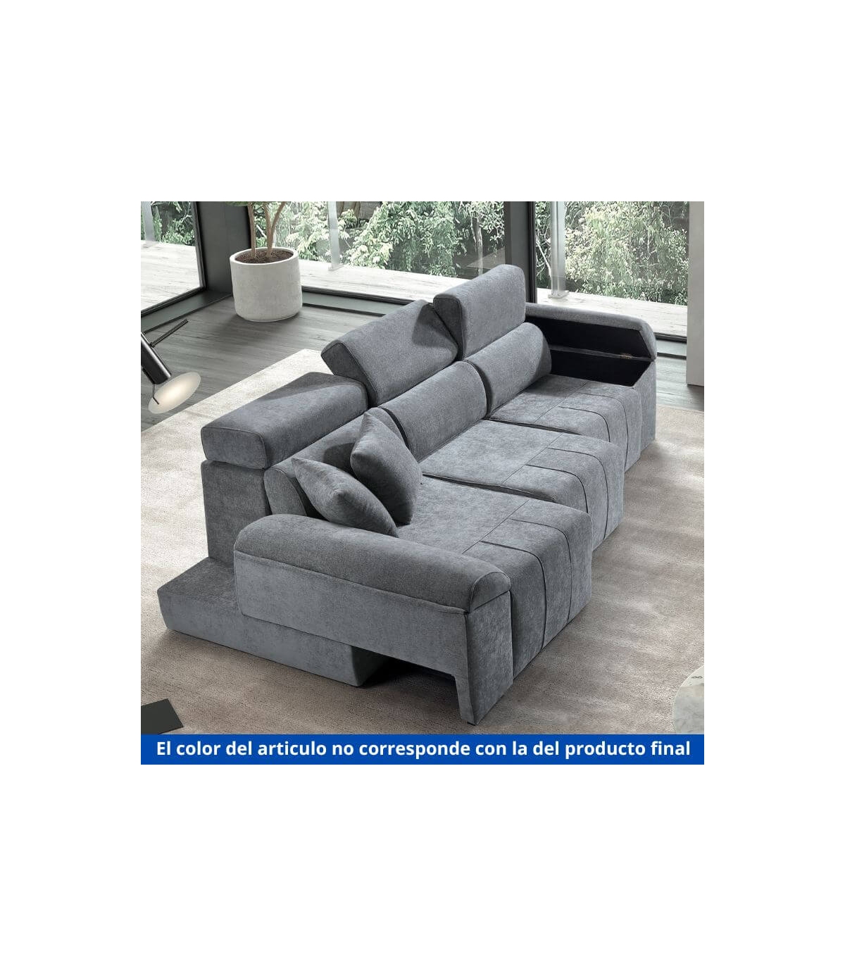 Entre sus prestaciones destacan los cabeceros reclinables con sistema italiano, que permiten ajustar y fijar el respaldo en múltiples posiciones, y los asientos deslizantes con carro al suelo, que amplían la superficie útil sin perder elegancia. Sus brazos deslizantes incluyen prácticos arcones para mantener el orden en el salón. Además, el modelo es desenfundable, fácil de limpiar e incluye 2 cojines decorativos que completan su estilo contemporáneo.