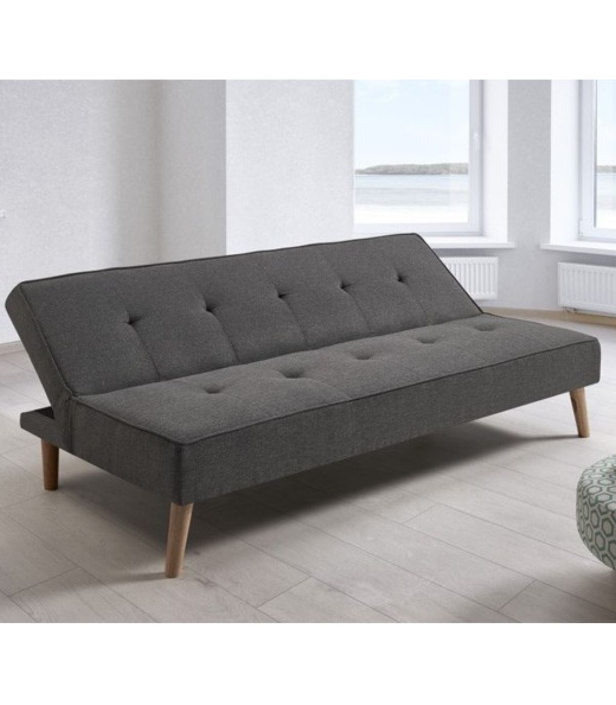 El sofá cama Unai destaca por su diseño nórdico y su funcionalidad. Tapizado en tela gris y con patas de madera en color haya, aporta calidez y estilo a cualquier estancia.